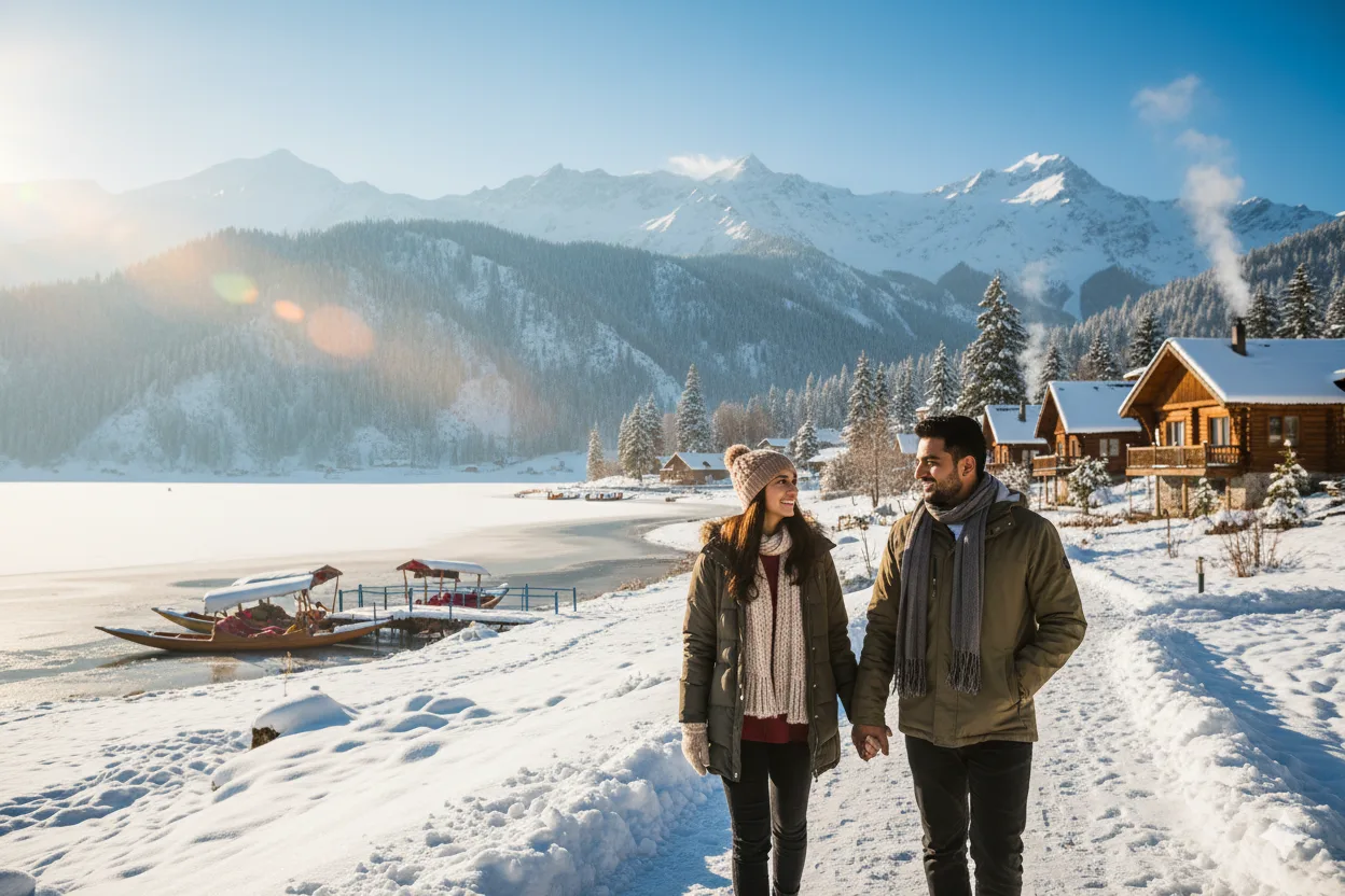 Winter wonderland awaits — snow-capped peaks, cozy stays, and peaceful moments. Perfect for couples & solo travelers.